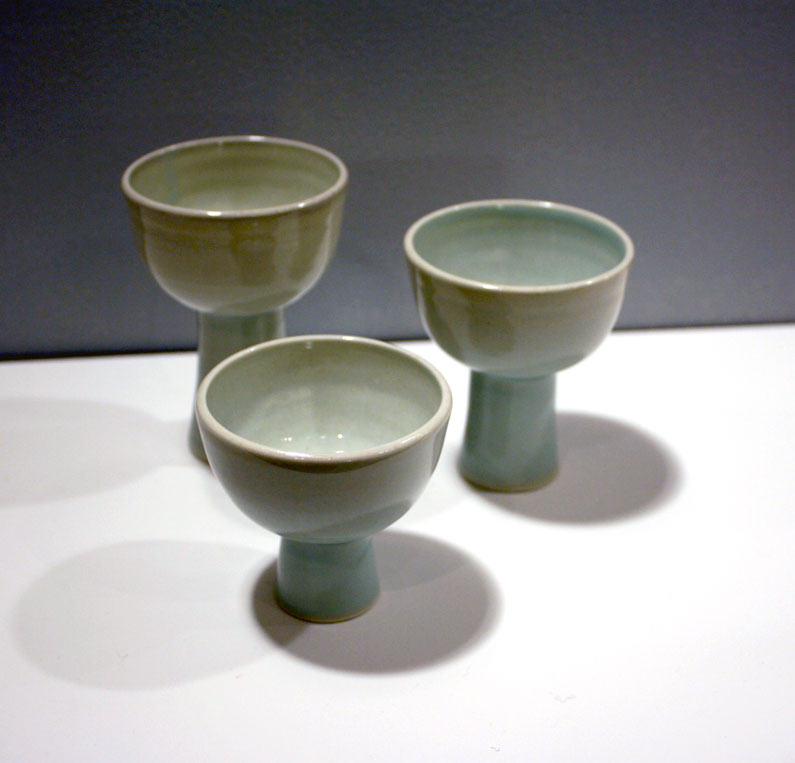 'based on everyday dim sum teacups, these are handmade to mimic their mass-produced counterparts & stand on their tip toes to be noticed. the set is made to be added to any utilitarian teacup collection to remind us of the cups that we often overlook. each set contains 3 cups, each raised to a different height & made in Jingdezhen, the porcelain capital of China.' - amanda huynh