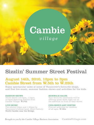 please join us this saturday for some fun on cambie street. there will be live music, fashion shows, food and we will have a sidewalk sale as well.
