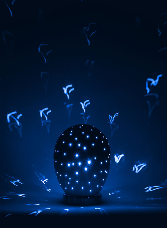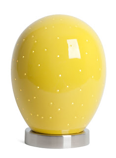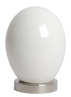 "Beautiful - Light projected through tiny openings on the stoneware egg’s surface creates a dream like environment that is perfect for bedtime. Richly finished in glossy color and polished stainless steel base.