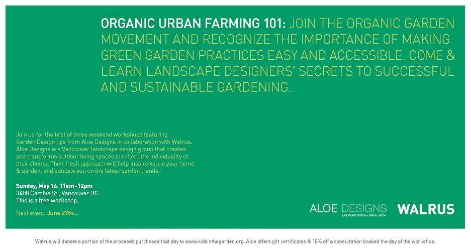 we are thrilled to be working with the talented team at Aloe Designs to bring you ORGANIC URBAN FARMING 101: