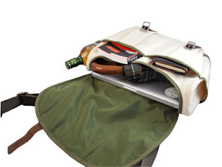 "As a daily commuter I wanted to design a medium sized messenger-style bike bag that could fit my 13" MacBook and sit securely on my waist. Designed with two side pockets for water bottles, two interior pockets, one zip pocket and a slash pocket on the back. Comes with adjustable waist strap to keep it from moving and a military spec adjustable webbing shoulder strap with leather shoulder pad. Genuine leather trim. Dull nickel hardware. Nylon Pack Cloth lining. 14" x 12""