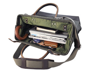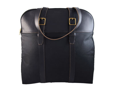 "Being fans and collectors of vintage and antique military items we decided to remake a pilots helmet bag and this was the result. Ours comes with a Swiss Riri zipper for the main compartment and for the interior pocket. Handles size down so you can carry it or increase the size for wearing it under your shoulder. Padded throughout, top quality leathers for the trim and a rugged Denier nylon lining. Fits all laptops. It stands 18.5" tall and 16" wide. Handles have a drop of 9.5" to 5.5." Dull nickel hardware."