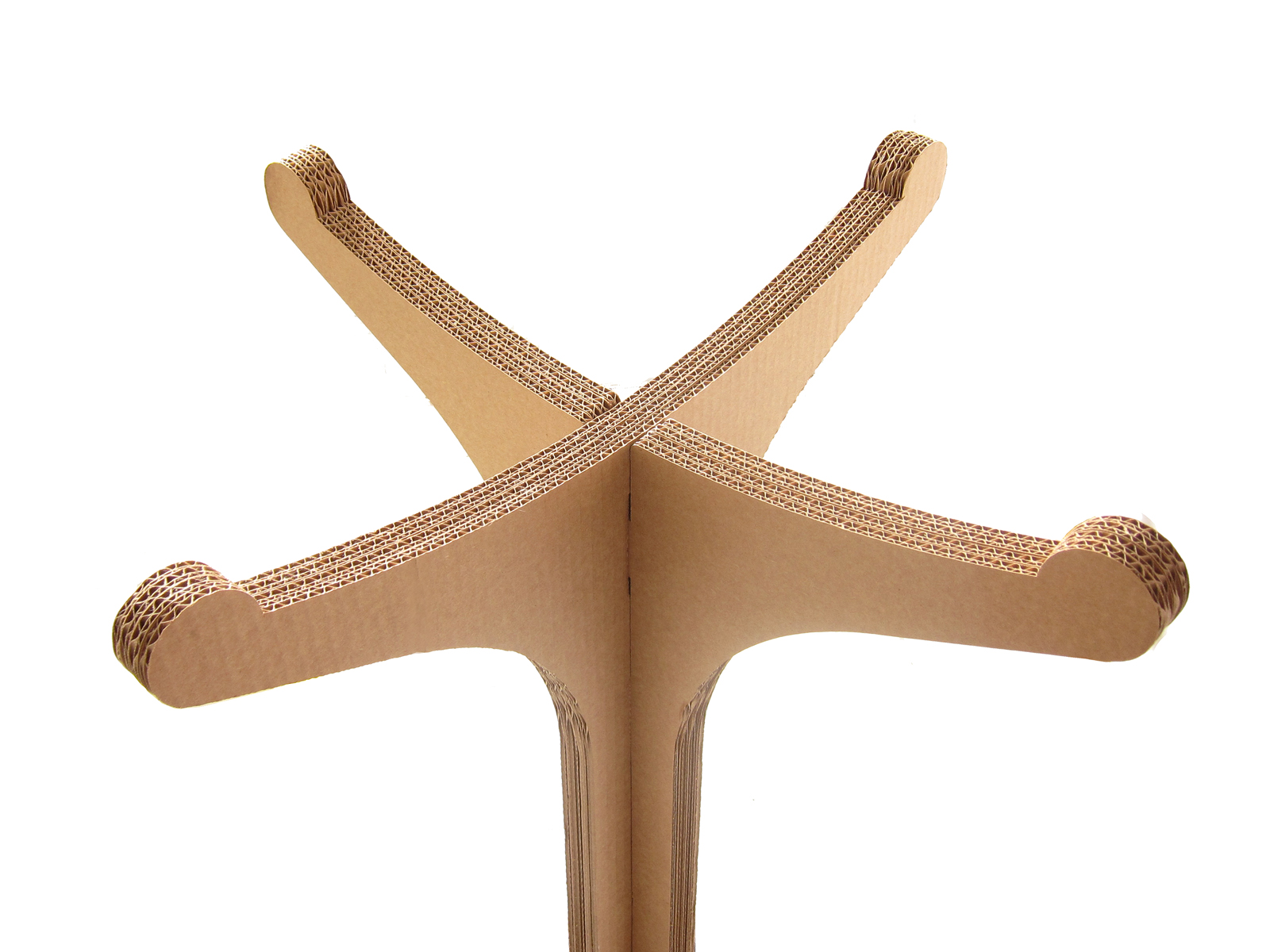 Jared Schmale is an industrial designer living in Vancouver who enjoys creating products from untraditional, recyclable and recycled materials - the Cardboard Coatrack is no exception. Three years ago, Jared was working as a packaging designer and needed a coatrack. Armed with AutoCAD, a CNC cardboard cutter, and an abundant supply of cardboard, the idea came quite naturally. The idea to bring it to market came after realizing that 3 years later, the original prototype was still being used daily, and functioning as well as when it was new! Over the past three years, the Cardboard Coatrack has been subjected to three rainy Vancouver winters worth of wet jackets, backpacks and scarves. The coatrack is 100% recyclable and made of cardboard containing up to 50% recycled content. It has been tested to hold up to 35 lbs and can withstand a moderate amount of moisture!