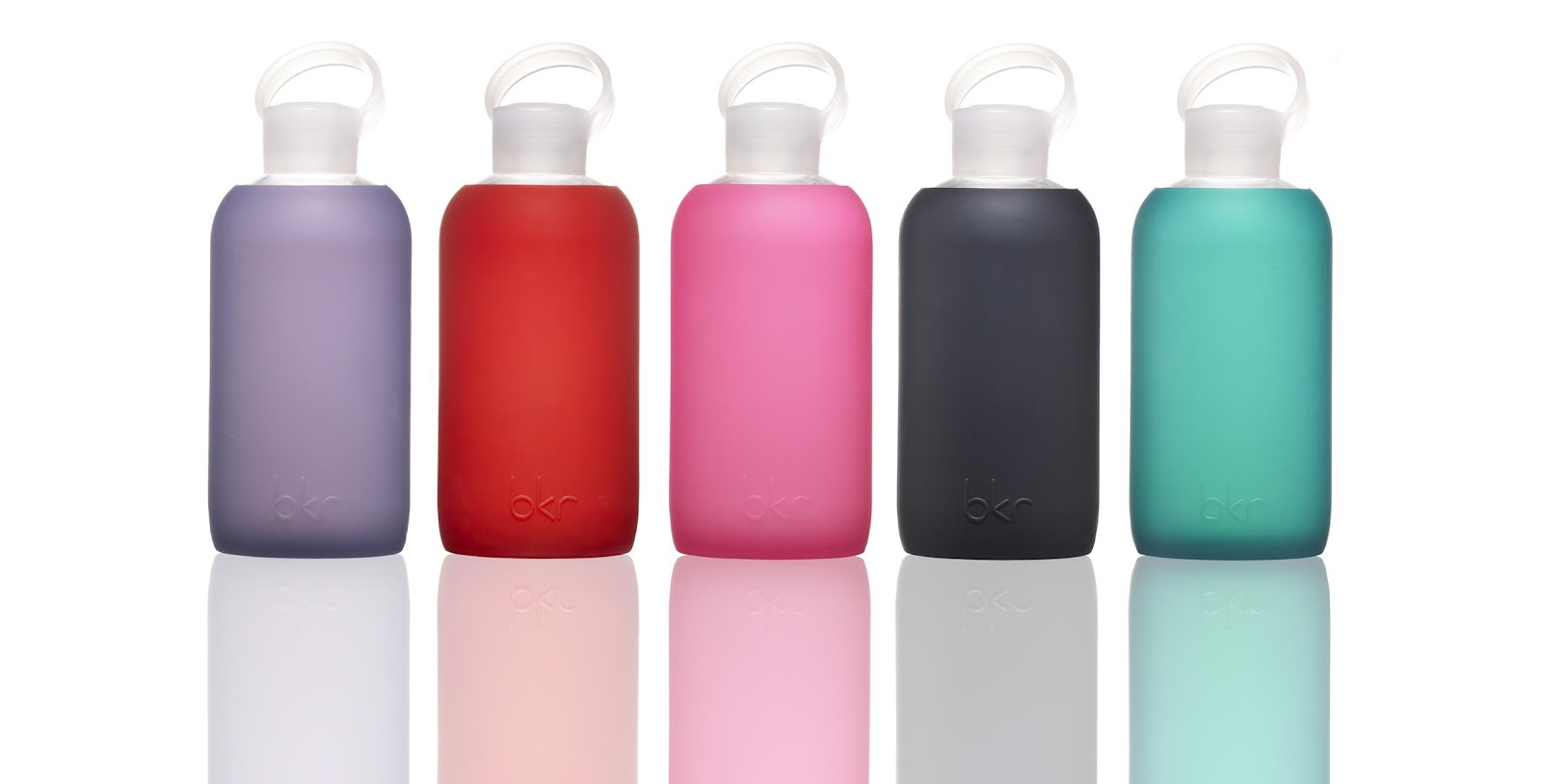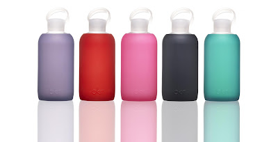 stay hydrated. new in store, bkr water bottles. bpa free, dishwasher safe, glass is recyclable and so is its cushiony, silicone, non-toxic sleeve.