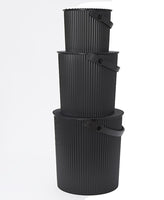 Hachiman reimagines the bucket as a colourful, lidded storage container with endless uses, indoors and out. Crafted in Japan to last a lifetime, it makes for a sleek and sturdy stool, side table, toy box, cooler, planter, wastebasket, recycling bin, and more. The opening in the handle is designed to hold a garden hose for hands free filling. Easy to stack, each bucket can support up to 330 pounds (150kg).
