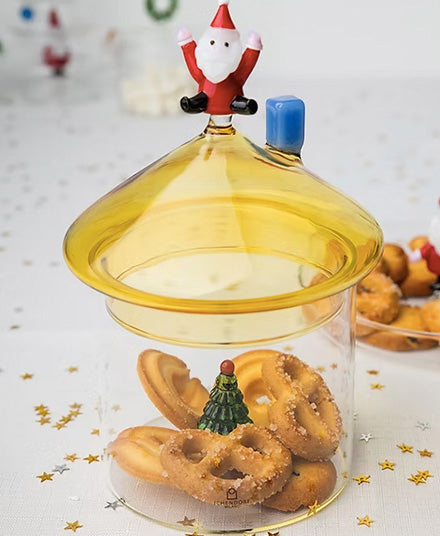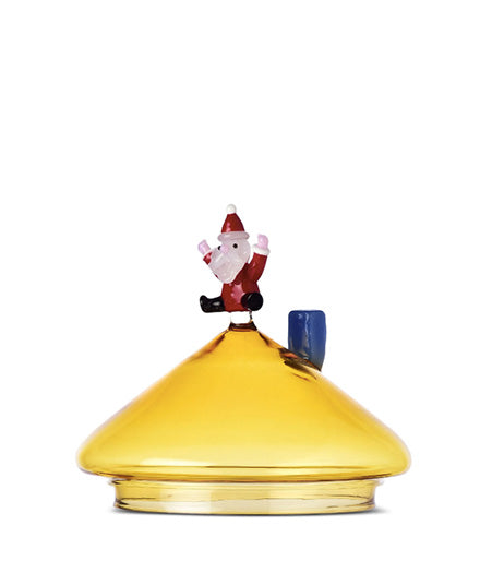Encapsulating festive charm in clear borosilicate glass, this playful box from the Christmas Tales collection by Ichendorf Milano (Italy) features a joyful Santa figure leaping on the lid with a stylised Christmas tree inside the box – a unique design accent that doubles as a decorative piece and storage box. With its cylindrical glass body and a glass lid, it brings holiday cheer to your tabletop or gifting moments, blending artisan Italian craftsmanship with whimsical seasonal spirit.