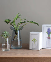 Aqua Culture Vase is designed to celebrate the beauty of leaves growing and roots extending in the water. It is composed of 2 parts—the plate and the vase, which make it easy to take care of various plants. The plate supports the growing leaves such as herbs. It is also perfectly shaped for bulbs like hyacinth and seeds like avocado. You can choose to enjoy it as a flower vase without the plate. Get inspired to start a life with plants.