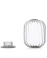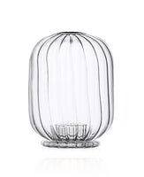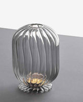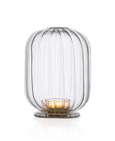 A two piece tealight in the shape of a lantern. The ridged glass casts a beautiful glow on a dining or side table to give a little warmth and elegance to your evening.