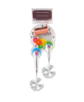 The double rainbow maker is solar powered and attaches to a window with a suction cup. Please note that because it is solar powered, it should be set up on a window that gets direct sunlight!