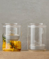 - Materials: Body - Heatproof glass, Cobblestone (inner lid weight) - Borosilicate glass, Outer lid - Resin
