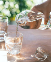 Lightweight and compact WATER BOTTLE lets you hydrate effortlessly. Made of high quality transparent copolyester, it is durable and scratch resistant. The lid opens with a single twist and has a handle that is comfortable to hold, making it convenient to carry around. The bottle's beautiful form and transparency stands out when you put water inside.