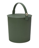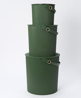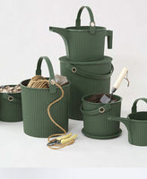 Hachiman reimagines the bucket as a colourful, lidded storage container with endless uses, indoors and out. Crafted in Japan to last a lifetime, it makes for a sleek and sturdy stool, side table, toy box, cooler, planter, wastebasket, recycling bin, and more. The opening in the handle is designed to hold a garden hose for hands free filling. Easy to stack, each bucket can support up to 330 pounds (150kg).