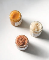 Agha Studio's Skin Smoothing Scrub contains organic sugar, skin-nourishing oils and pure castille soap. Fine sugar will gently exfoliate roughness while natural vegan oils moisturize the skin. As you massage in with water, it will turn into a foaming cleanser leaving you with clean, smooth and glowy skin.