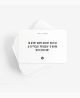 2. Pick a card from anywhere in the box and ask your companions to address the question on it with sincerity and thoughtfulness.