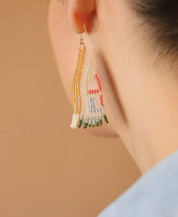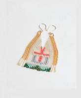 • Materials used: Japanese glass beads, golden nylon thread, and the hooks are hand forged 14 KT gold filled wire for sensitive ears.