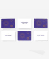 Here are 52 cards, each featuring a different unfinished sentence (for example, ‘Men are …’, ‘I want …’, or ‘What I really need is …’). The idea is to complete them as fast as possible, without censoring whatever comes into your mind, so that you can discover a range of things you might deep down really feel, fear, want, regret or are cross about, that may be just outside of ordinary consciousness. Using the cards offers a newfound sense of self-understanding and clarity, as well as the sheer good fun of self-discovery.