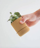 Never overwater your plants again! These indoor planters, by Conifer, contain a clever reservoir system in the base to allow excess water to drain out. By tilting the planter over a sink, the excess water can be poured out of the reservoir. Plants can either be transplanted into the planters or remain in their original nursery pots. Light weight for easy movement and watering.