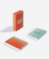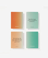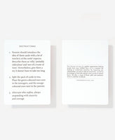 Not many teenagers want to talk to their parents that much. Their reasons are numerous and often sensible; yet for parents, the silence can feel painful and mysterious. What happened to their once chatty little ones? What might teenagers truly want to tell their parents, if only there was the right opportunity? And what might parents want to tell their children in turn, if it didn’t generate an immediate wince or boredom? This is a pack of cards that can break a log-jam of frustration and silence between generations with humour and curiosity.