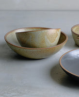 The reddish-brown clay peeking out around the rim and the expressive glaze in serene tones characterize KINTO TERRA. Carefully handcrafted individually by artisans, each piece enhances dishes like stews and oven-cooked recipes, creating a warmly inviting winter dining scene. With a stable form and a moderate thickness that doesn't feel too heavy, the pieces can be stacked for storage.