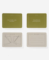 •  The box contains two sets of 80 cards (2 x 75 ‘statement’ cards plus 5 ‘blank’ cards) – each person has their own set.