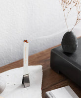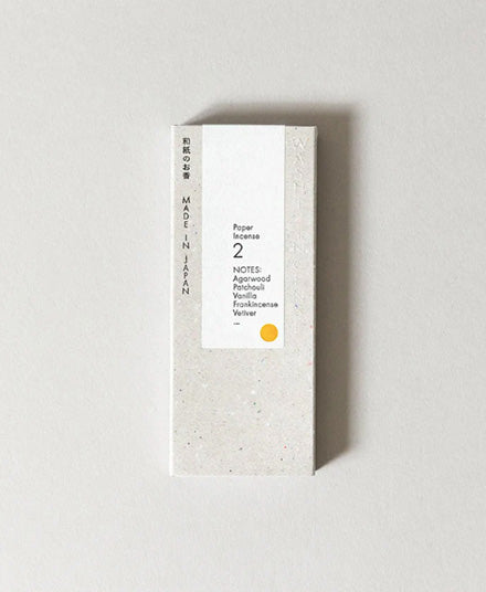 Washi Paper Incense Strips, a new type of incense combining friendly missives with rich aromas. Each box contains 30 strips of incense steeped in a blend of natural aromas carefully combined to create a specific scent, along with a metal clip to hold the incense as it burns.